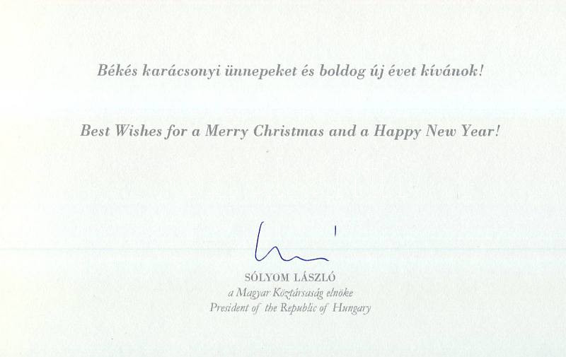 Leírás: Sólyom László köztársasági elnök aláírása újévi kártyáján