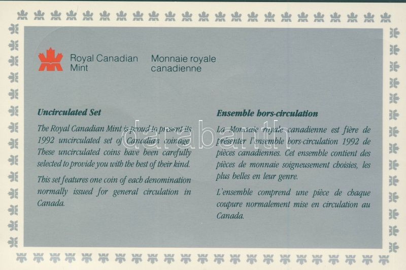 Kanada 1992. 1c-1$ 6klf db, szettben T:PL Tanúsítvánnyal! https://www.darabanth.com/hu/111-Gyorsarveres/111.0/Numizmatika/Kulfoldi-fem-es-ezustpenzek-a-kozepkortol-napjainkig-Foreign-silver-coins-from-the-middle-ages~1000216/Kanada-1992-1c-1USD-6klf-db-szettben-TPL-Tanusitvannyal~II278852