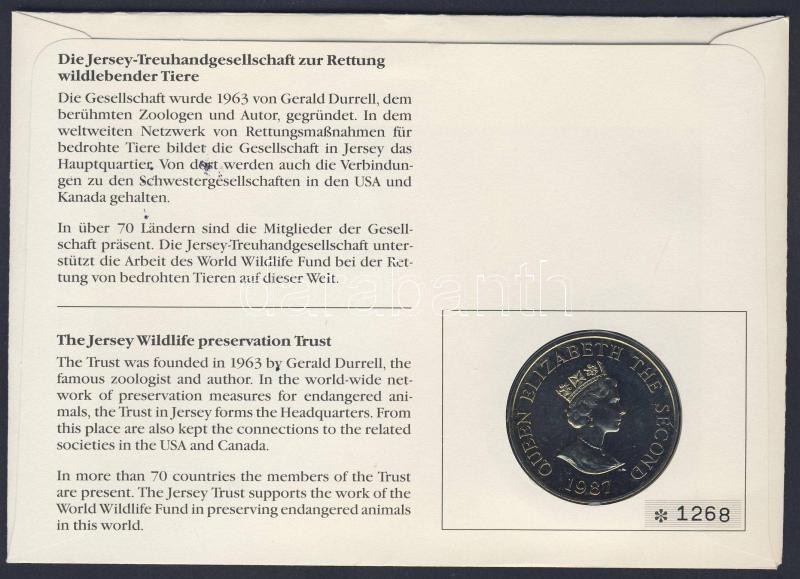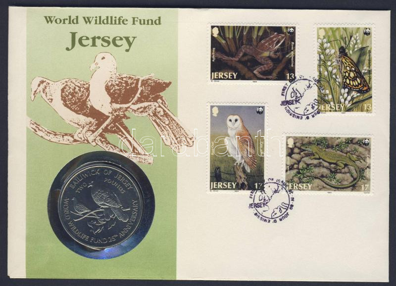 Leírás: Jersey 1987. 2Ł "25 éves a WWF" érmés borítékon teljes bélyegsorral, elsőnapi bélyegzővel, hátoldali ismertetővel T:BU