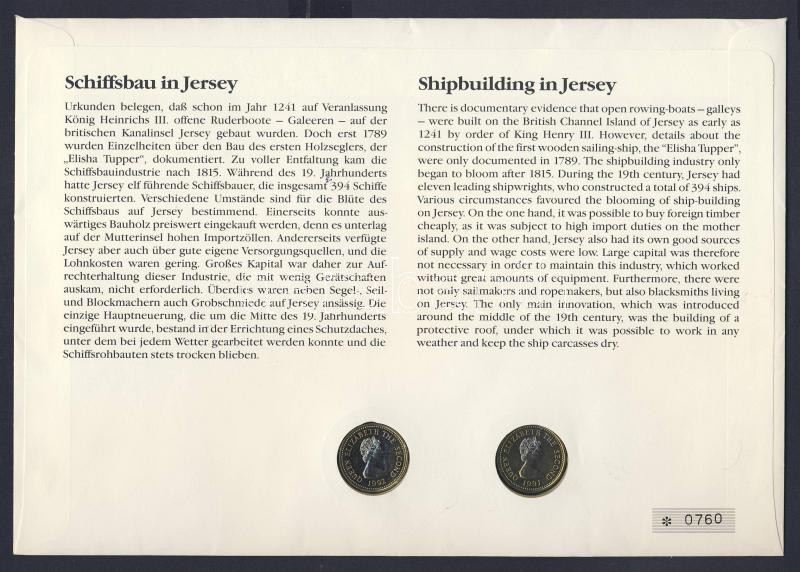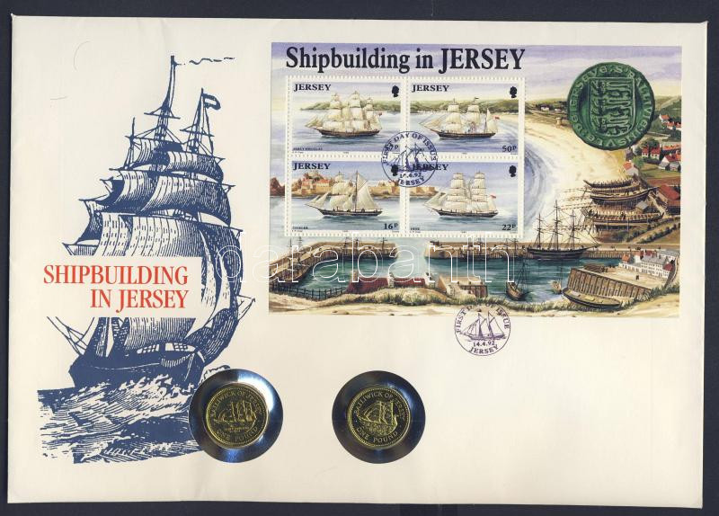 Leírás: Jersey 1991. 1Ł + 1992. 1Ł (aranyozva) érmés borítékon elsőnapi bélyegzős bélyegblokkal, hátoldali ismertetővel T:1