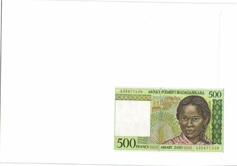 Leírás: Madagaszkár 1994. 500Fr dekoratív, nagyalakú bankjegyes, bélyeges borítékon T:I