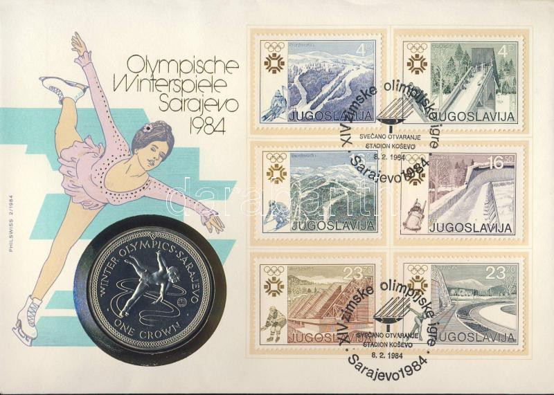 Leírás: Man-sziget 1984. 1C "Téli olimpia-Sarajevo" érmés, bélyeges borítékon, alkalmi bélyegzőkkel T:BU