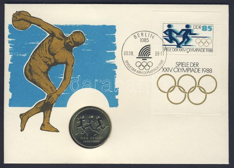 Leírás: NDK 1988. 10M "Sport" érmés borítékon alkalmi bélyegzős bélyegblokkal T:1