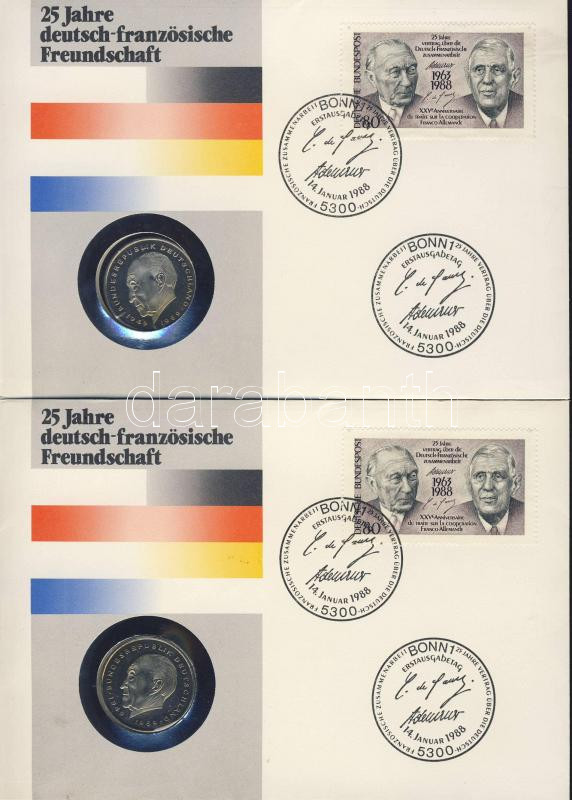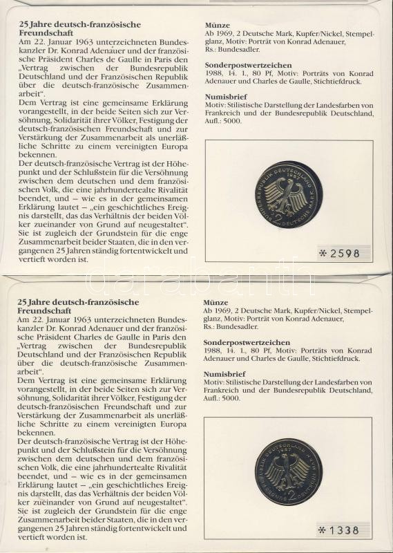 Leírás: NSZK 1987. 2M "Konrad Adenauer" érmés, bélyeges borítékon alkalmi bélyegzővel, hátoldali ismertető tanúsítvánnyal (2x) T:1 Csak 5000 db!