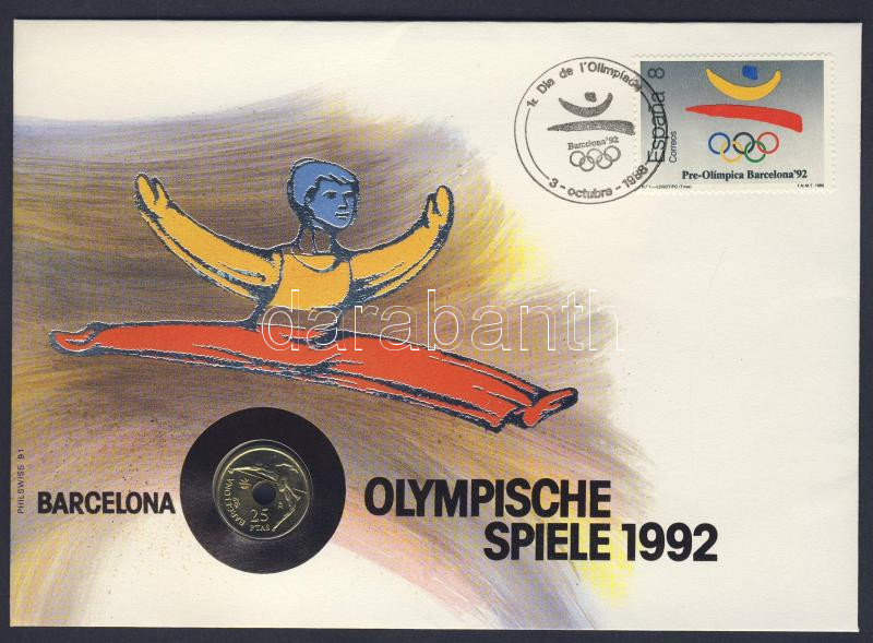Leírás: Spanyolország 1990. 25P "Barcelona" bélyeges érmés borítékon elsőnapi bélyegzővel, ismertetővel T:1