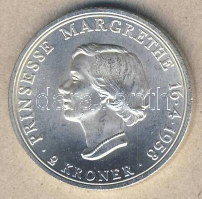 Leírás: Dánia 1958. 2K Ag "Margit hercegnő születésnapja" T:2 Tanúsítvánnyal!