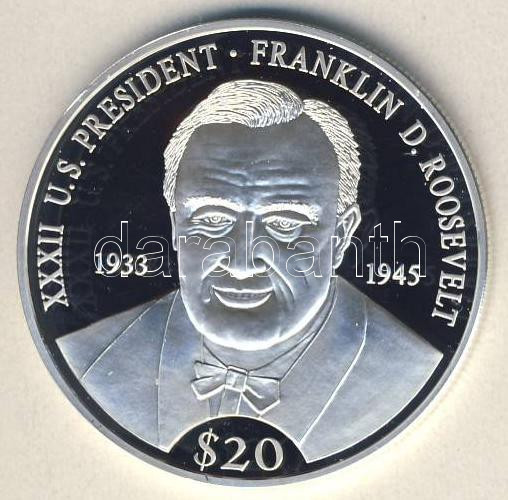 Leírás: Libéria 2000. 20$ Ag "Amerikai elnökök-Franklin D. Roosevelt" T:PP