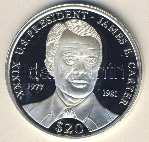 Leírás: Libéria 2000. 20$ Ag "Amerikai elnökök-James E. Carter" T:PP