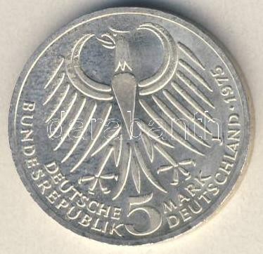 NSZK 1975. 5M Ag "Ebert" T:1 https://www.darabanth.com/hu/112-Gyorsarveres/112.0/Numizmatika/Nemet-BirodalomCsaszarsagWeimari-KoztarsasagNemet-Allamok-bankjegyei-papir-es-fem-szuksegpenzei~407/NSZK-1975-5M-Ag-Ebert-T1~II286209