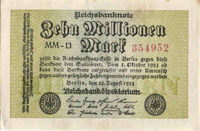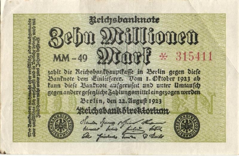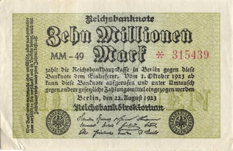 Német Birodalom / Weimari Köztársaság 1923. 10.000.000M (4x) "Wellen" ... https://www.darabanth.com/hu/112-Gyorsarveres/112.0/Numizmatika/Nemet-BirodalomCsaszarsagWeimari-KoztarsasagNemet-Allamok-bankjegyei-papir-es-fem-szuksegpenzei~407/Nemet-Birodalom-Weimari-Koztarsasag-1923-10000000M-4x-Wellen-vizjellel-koztuk-kis-u~II284466