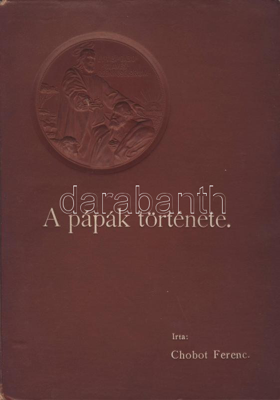 Chobot Ferenc: A pápák története, Rákospalota 1909, dombornyomott kiad... https://www.darabanth.com/hu/113-Gyorsarveres/113.0/Festmeny-mutargy-papirregiseg-egyeb/Konyvek-Books~100077/Chobot-Ferenc-A-papak-tortenete-Rakospalota-1909-dombornyomott-kiadoi-egeszvaszon-kotes~II289066