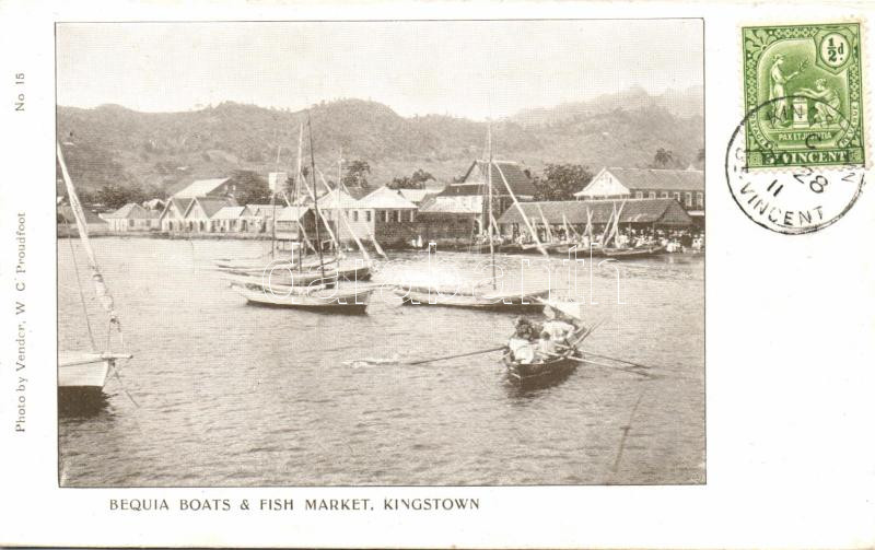 Kingstown boats and fishmarket https://www.darabanth.com/hu/113-Gyorsarveres/113.0/Kepeslapok/St-Vincent-Bequia~100123/Kingstown-boats-and-fishmarket~II289868