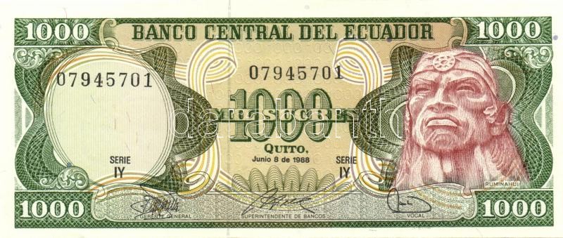 Ecuador 1988. 500S, 1000S T:I https://www.darabanth.com/hu/113-Gyorsarveres/113.0/Numizmatika/Kulfoldi-bankjegyek~100173/Ecuador-1988-500S-1000S-TI~II291122