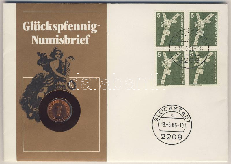 Leírás: NSZK 1984. 1Pf érmés borítékon 4 db bélyeggel, hátoldali ismertetővel T:1-