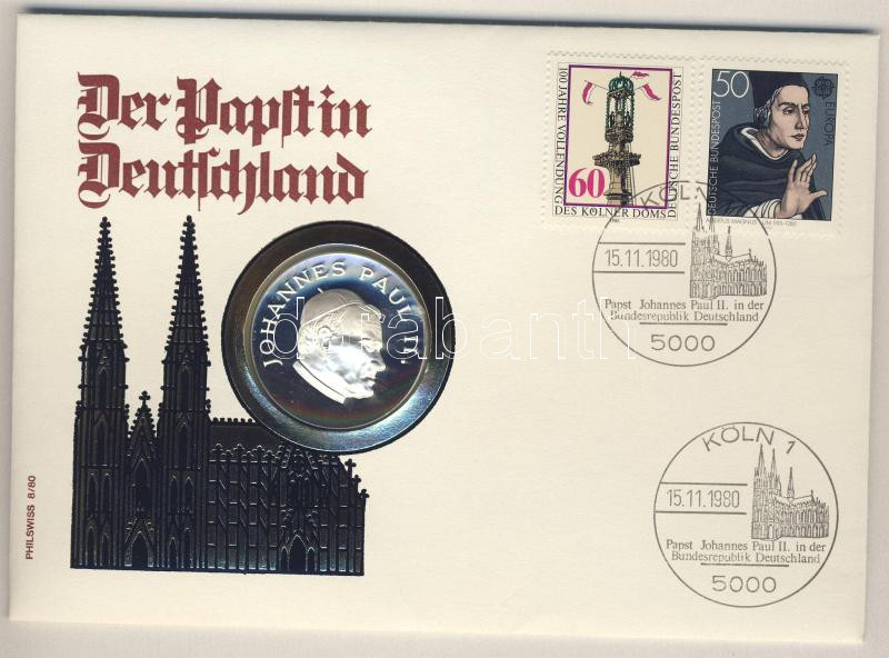 Leírás: NSZK DN "II. János Pál" Ag 15,1g érmés borítékon 2 db bélyeggel, alkalmi bélyegzővel T:PP