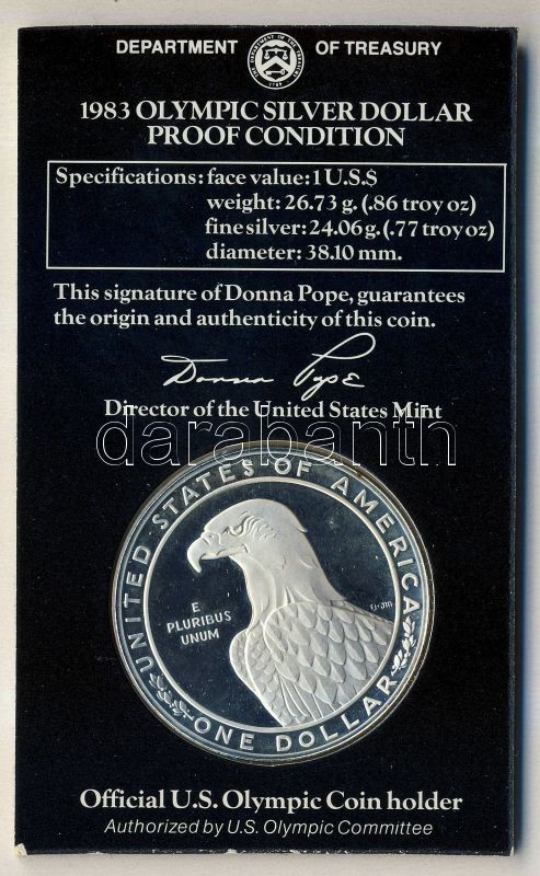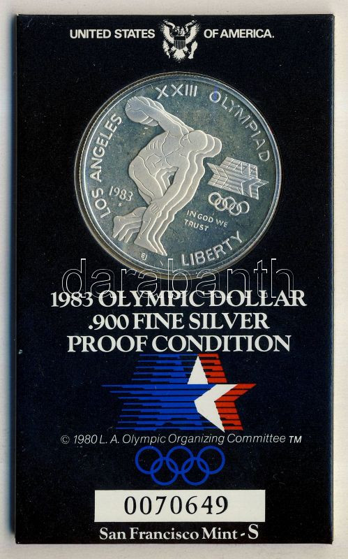 Leírás: USA 1983S 1$ Ag "Olimpiai játékok" eredeti csomagolásban T:PP