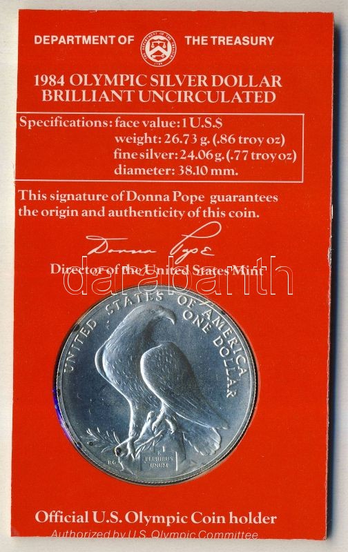 Leírás: USA 1984S 1$ Ag "Olimpiai játékok" eredeti csomagolásban T:BU