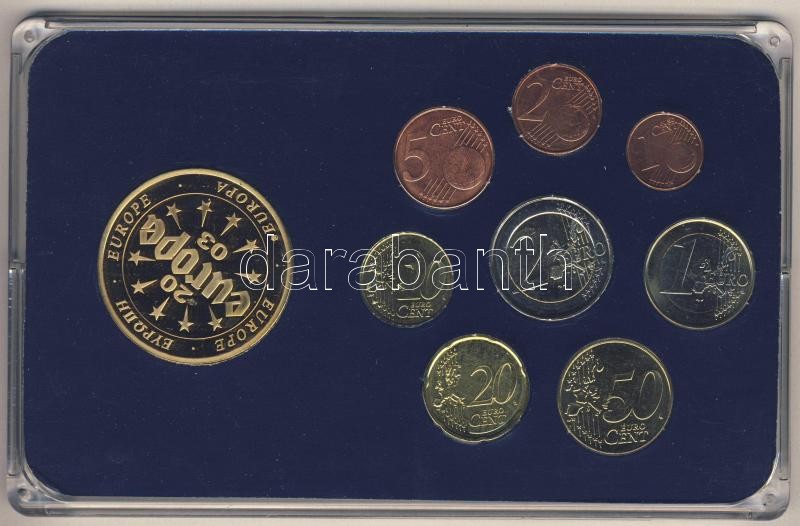 Leírás: Belgium 2001-2007. 1c-2€ 8klf db + Európa 2003. "Belgium" aranyozott emlékérem kereskedői szettben T:1,PP Limitált példányszám!