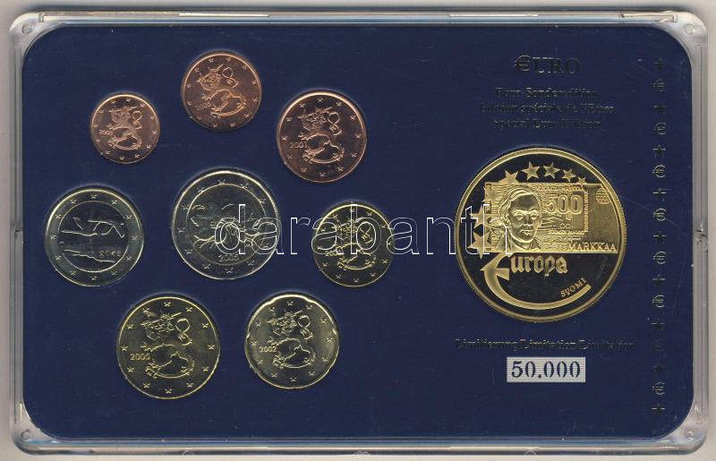 Leírás: Finnország 2000-2005. 1c-2€ 8klf db + Európa 2003. "Finnország" aranyozott emlékérem kereskedői szettben T:1,PP Limitált példányszám!