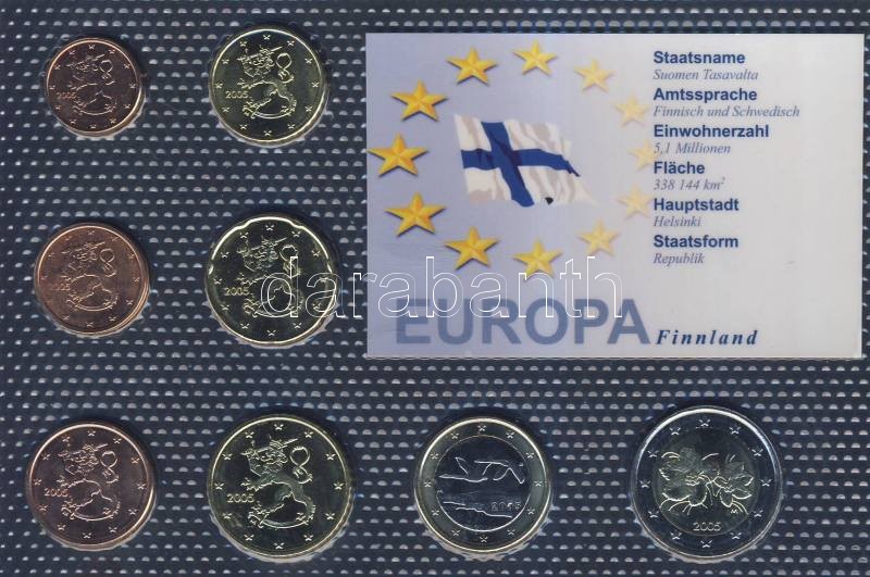 Finnország 2005. 1c-2€ 8klf db, kereskedői szettben T:1 https://www.darabanth.com/hu/113-Gyorsarveres/113.0/Numizmatika/Kulfoldi-szettek-es-probaszettek~100183/Finnorszag-2005-1c-2238364-8klf-db-kereskedoi-szettben-T1~II290455