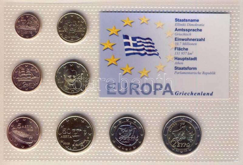 Leírás: Görögország 2002. 1c-2€ 8klf db, kereskedői szettben T:1