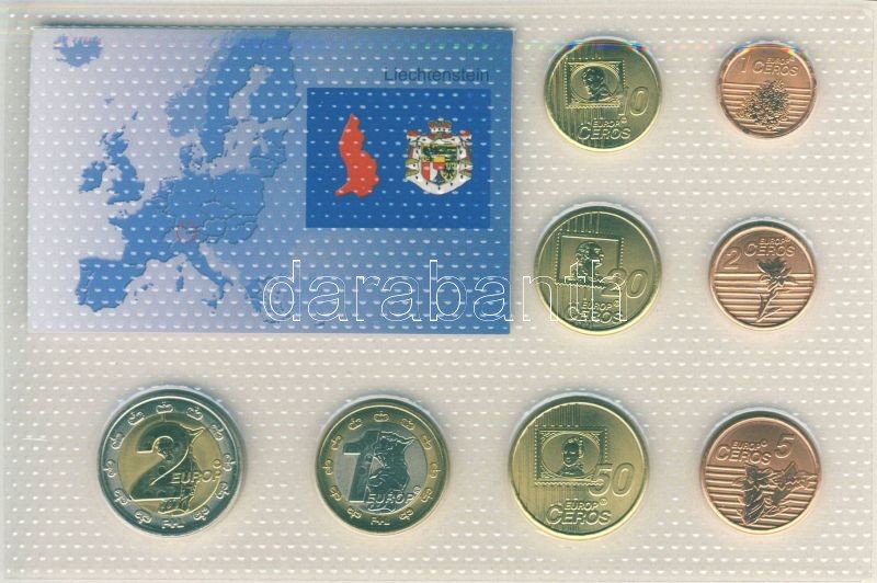 Leírás: Liechtenstein 2004. 1c,2c,5c,10c,20c,50c,1€,2€ próbaveretek, kereskedői szettben T:BU