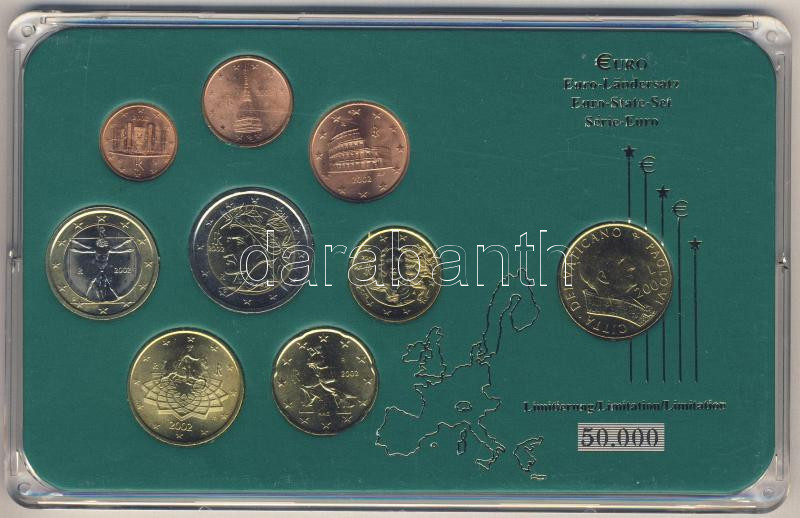 Leírás: Olaszország 2002. 1c-2€ 8klf db + Vatikán 2001. 500L aranyozva kereskedői szettben T:1 Limitált példányszám!