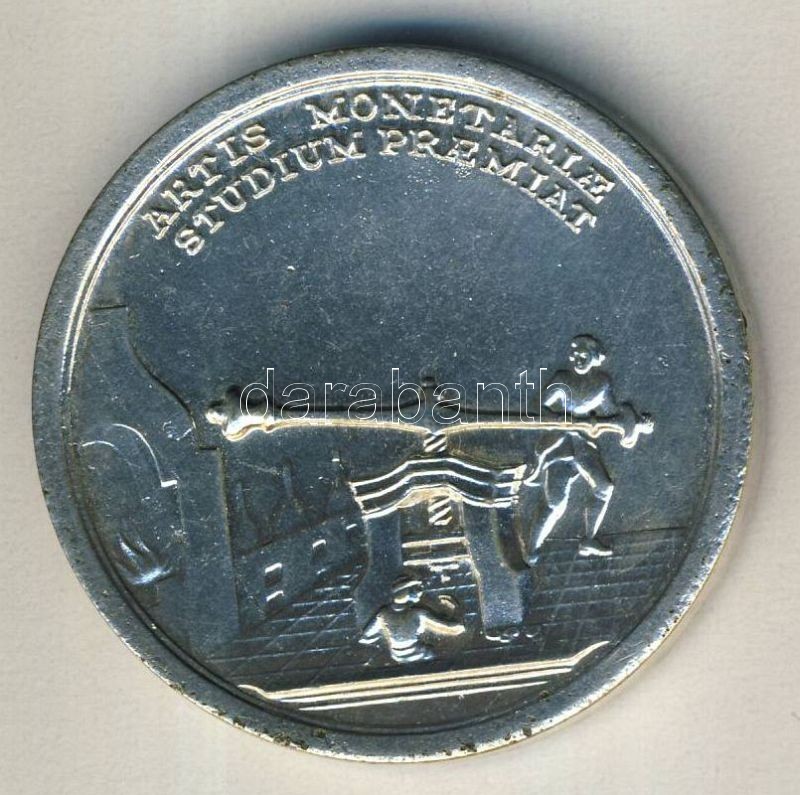 Leírás: DN "M. Terézia-pénzverő gép" fém emlékérem, ezüstözve T:2
