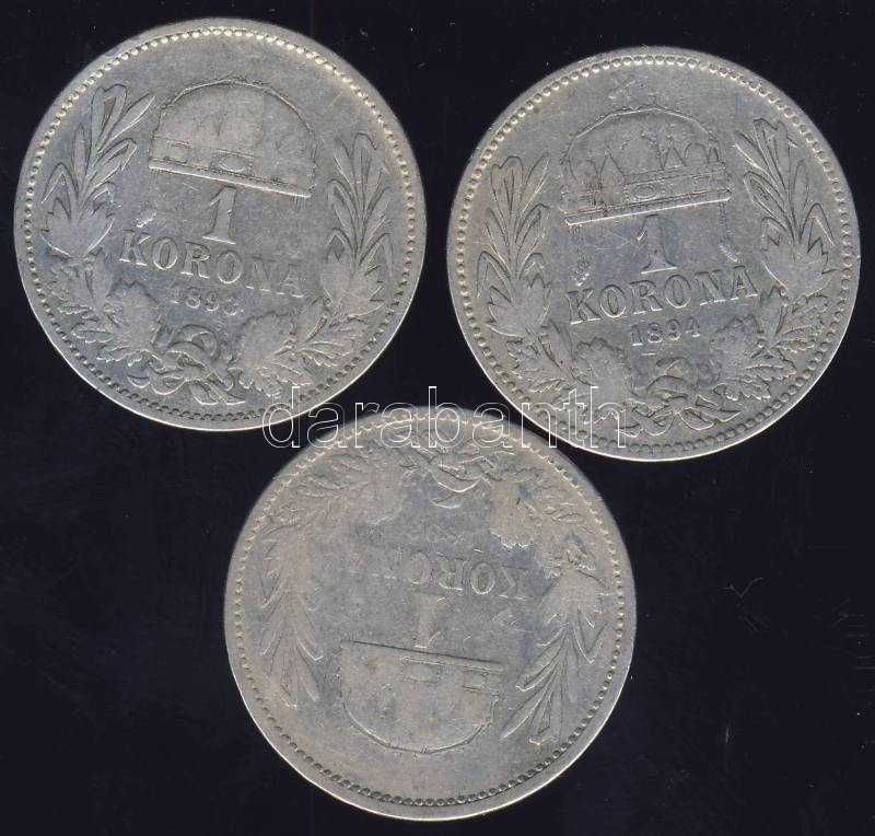 Leírás: 1893-94. 1K Ag (3x) T:3