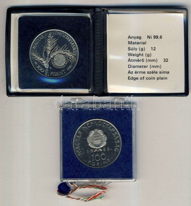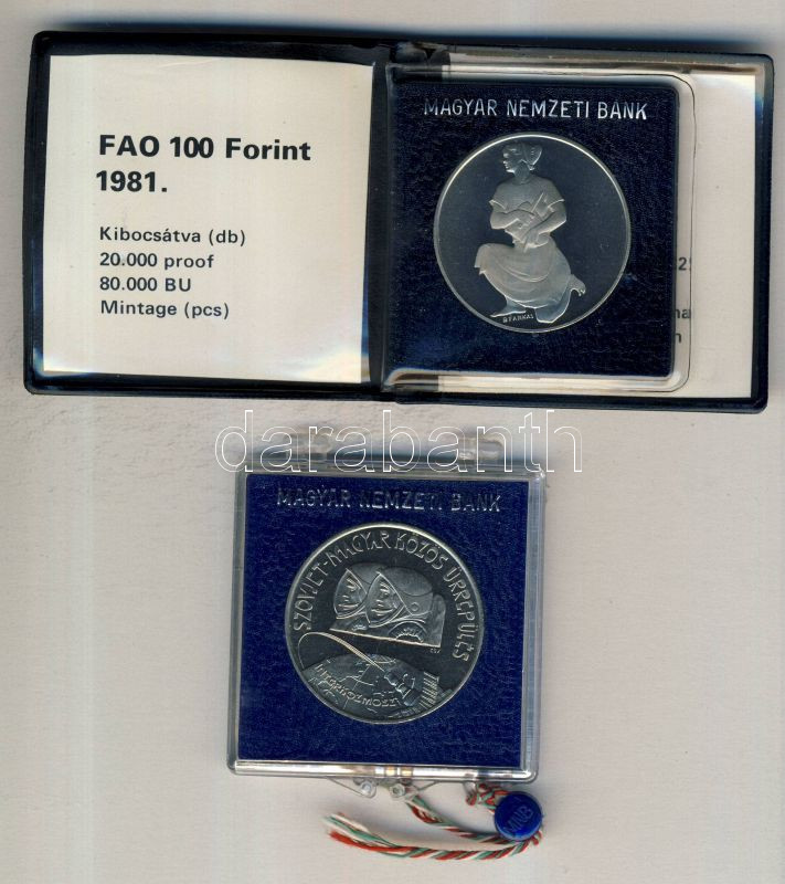Leírás: 1980. 100Ft "Szovjet-magyar közös űrrepülés" T:PP Eredeti, plombált MNB plasztiktokban! + 1981. 100Ft "FAO" T:PP Eredeti tokban, tanúsítvánnyal!