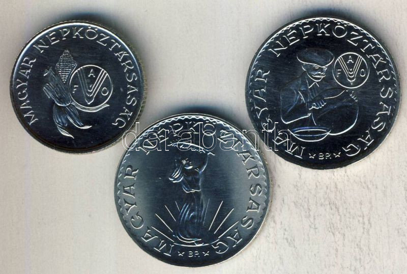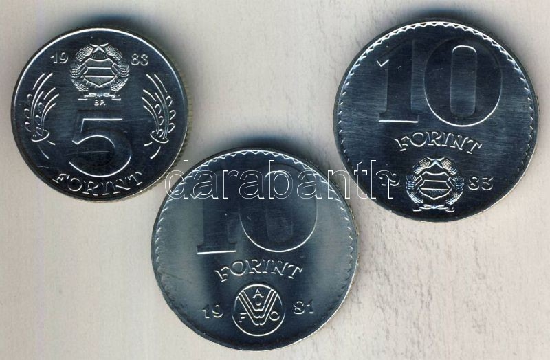 1981. 10Ft "FAO" + 1983. 5Ft, 10Ft "FAO" T:BU https://www.darabanth.com/hu/113-Gyorsarveres/113.0/Numizmatika/Magyar-es-magyar-verdejelu-fem-es-ezustpenzek-a-kozepkortol-napjainkig~100185/1981-10Ft-FAO-plus-1983-5Ft-10Ft-FAO-TBU~II291445