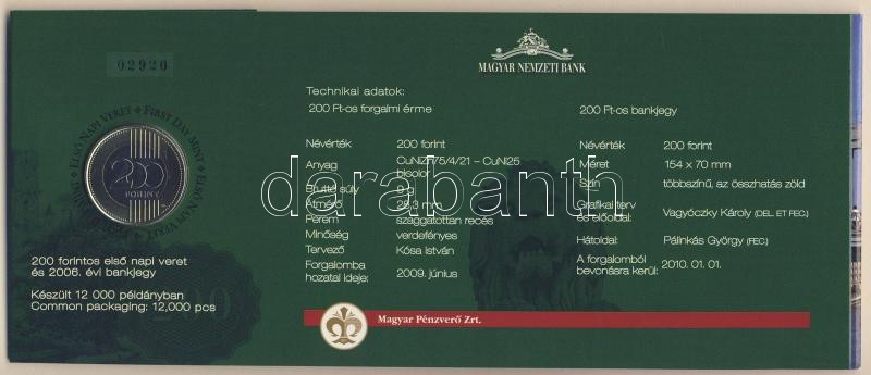 Leírás: 2009. 200Ft elsőnapi veret + 200Ft bankjegy "Búcsú a 200Ft-os bankjegytől" díszcsomagolásban T:BU, I Csak 12.000db!