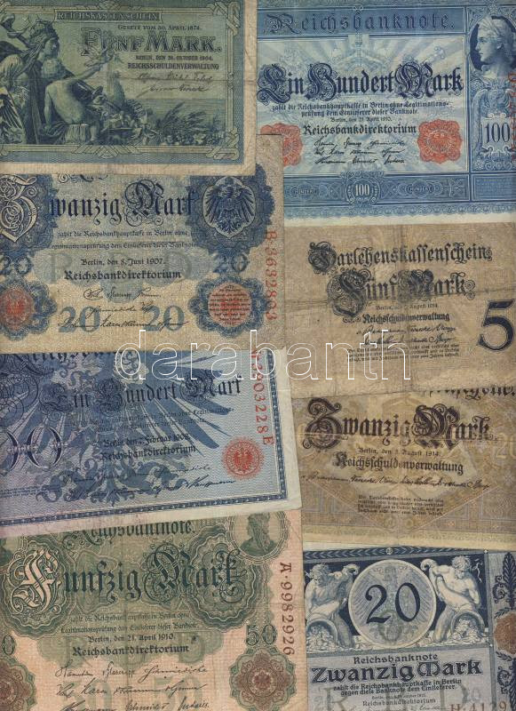 Német Birodalom 1904-től 107 klf db bankjegy Rosenberg-katalógus szerint rendezve; alszámok, vízjel, nyomatkülönbségek, s még sok más szempont alapján, sok jobbal! T:II,II/III,III