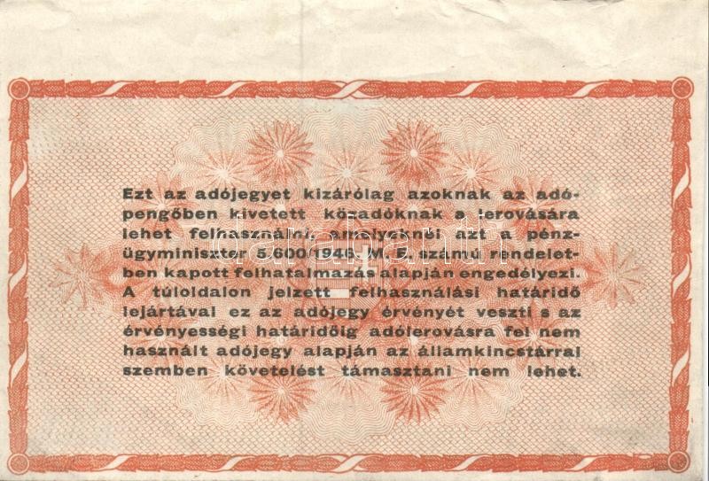 Leírás: 1946. 100.000.000AP főtípus, egyenetlenül ívből kivágva, igen széles felső ívszéllel T:gyári gyűrődésekkel R!