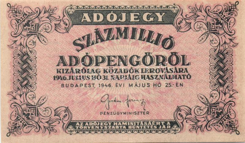 Leírás: 1946. 100.000.000AP vékony sárgás papíron, vágáshibás! T:I