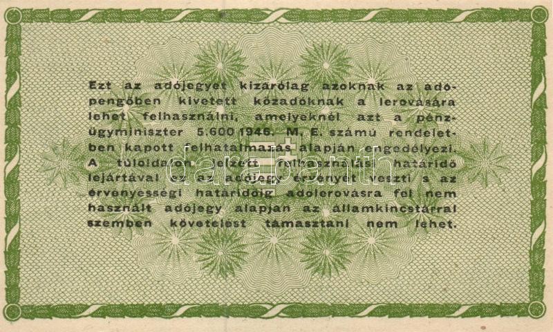 Leírás: 1946. 50.000AP barnásfehér vízjeles papíron, sorozat- és sorszám nélkül, vízjel talpa jobbra áll, de tükörkép T:I