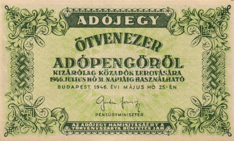 Leírás: 1946. 50.000AP vízjeles papíron, sorozat- és sorszám nélkül, vízjel szabályosan áll T:I