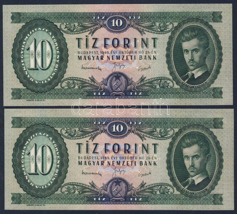 Leírás: 1949. 10Ft (2x) egymásutáni sorszámmal T:I