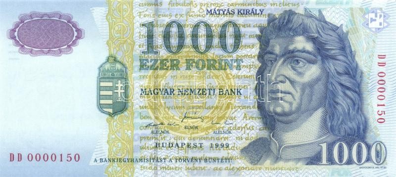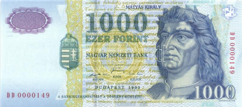 Leírás: 1999. 1000Ft "3x) "DD" egymásutáni, ill. kevés ugrású sorszámokkal (nagyon alacsonyak!) T:I