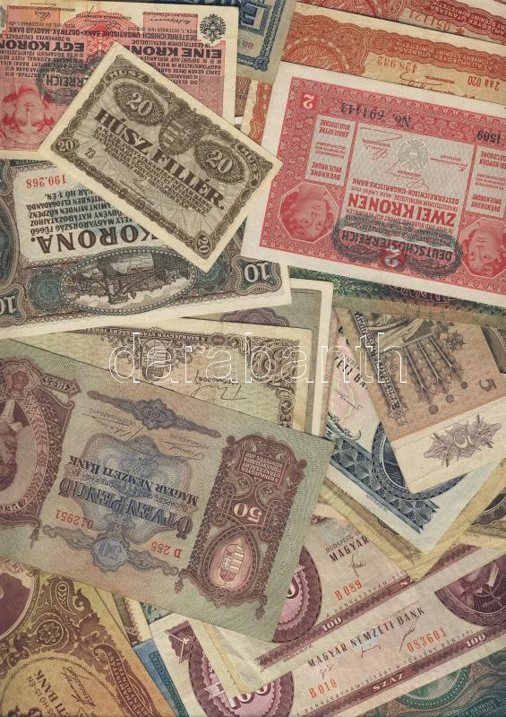 Leírás: 79 db klf magyar bankjegy korona-, pengő-, forint-időszakból jobbakkal, Adamovszky-katalógus alapján rendezve, variánsokkal T:II,II/III,III