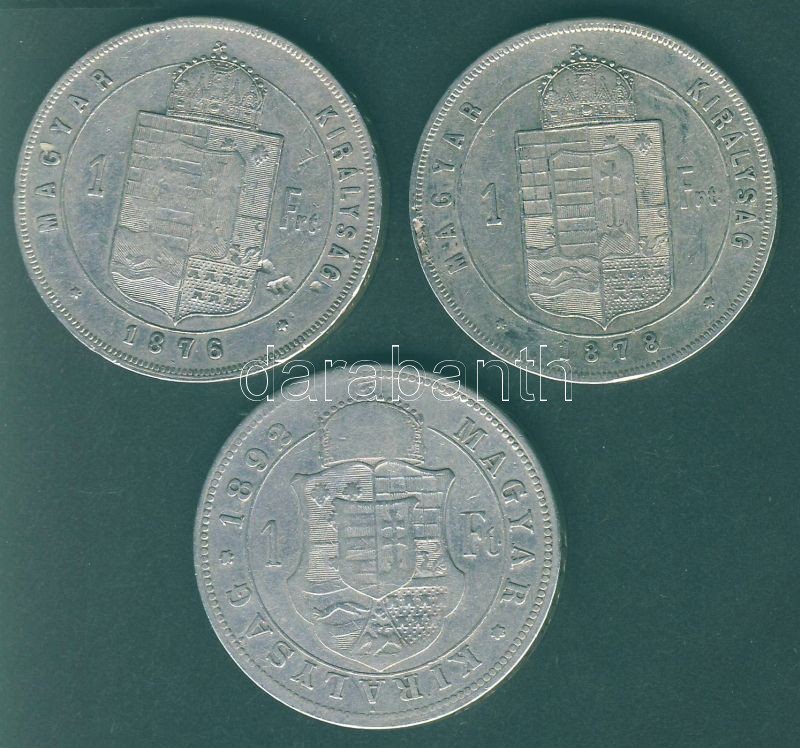 Leírás: 1Ft Ag 1876. T:3 ü. + 1878. T:3+ + 1892. Fiumei címer T:3-