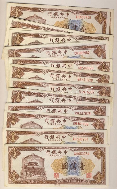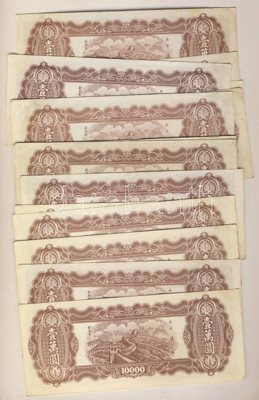 Leírás: Kína/Central Bank/"9 Északkeleti tartomány" kiadásai 1948. 10.000Y (17x) T:II+,II