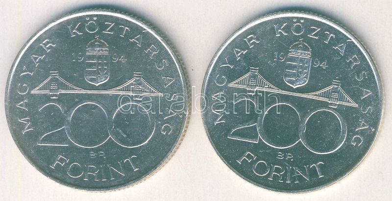 Leírás: 1994. 200Ft Ag "Deák" (2x) T:BU,2