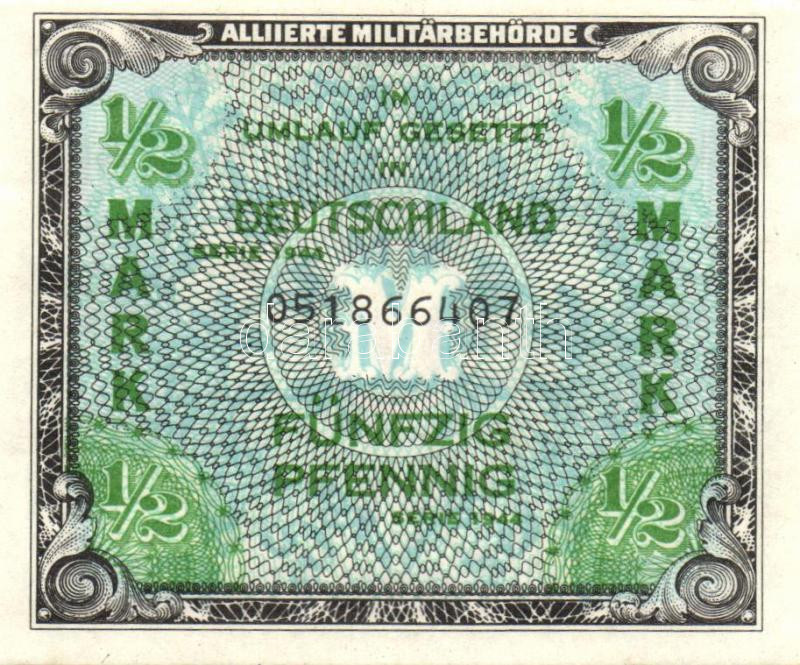 Leírás: Németország szövetségi megszállás alatt 1944. 1/2M USA-nyomat kilencjegyű sorszámmal T:I
