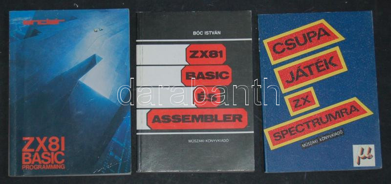 Leírás: ~1980 3db ZX 81 Sinclair számítógép könyv, mint: Zx 81 basic programming sinclair (angol nyelven), Csupa játék Zx spectrumra (műszaki könyvkiadó) és Bóc István: Zx 81 basic assembler (műszaki könyvkiadó)