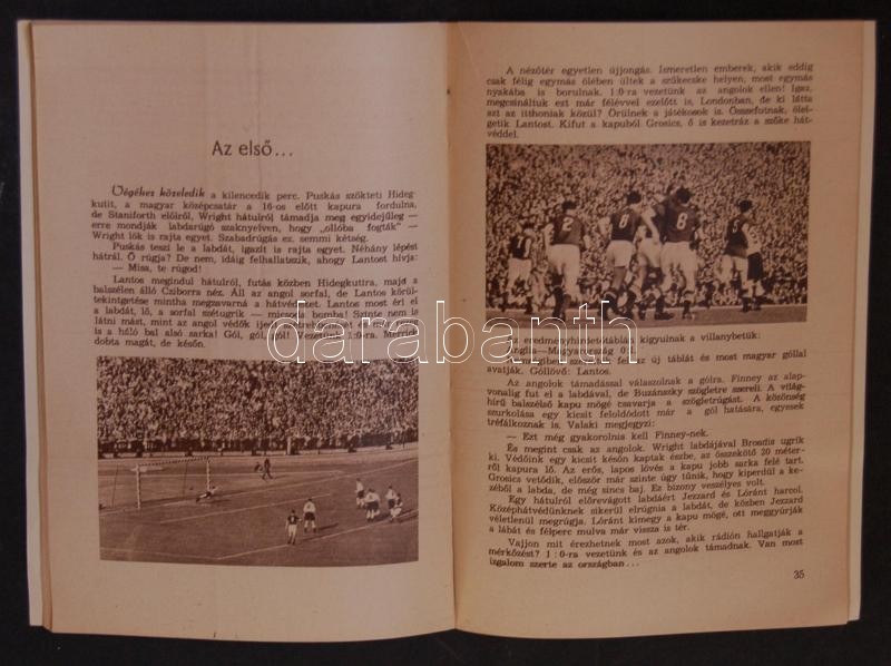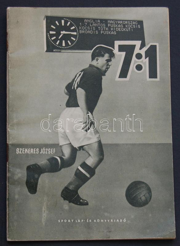 1954 Szekeres József: 7:1. A híres magyar-angol 6:3 visszavágója, a 7:1-es magyar győzelemmel végződött budapesti meccsről szóló 64 oldalas kiadvány sok képpel