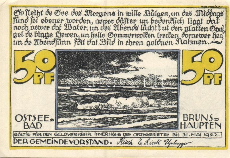 Leírás: Német Birodalom / Weimari Köztársaság / Brunshaupten 1922. 10Pf + 25Pf + 50Pf 3 klf db, teljes sor T:I