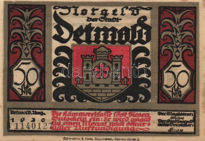 Német Birodalom / Weimari Köztársaság / Detmold 1920. 50Pf (10x) 10 kl... https://www.darabanth.com/hu/116-Gyorsarveres/116.0/Numizmatika/Nemet-BirodalomCsaszarsagWeimari-KoztarsasagNemet-Allamok-bankjegyei-papir-es-fem-szuksegpenzei~330/Nemet-Birodalom-Weimari-Koztarsasag-Detmold-1920-50Pf-10x-10-klf-db-teljes-sor-TI-I-~II308298
