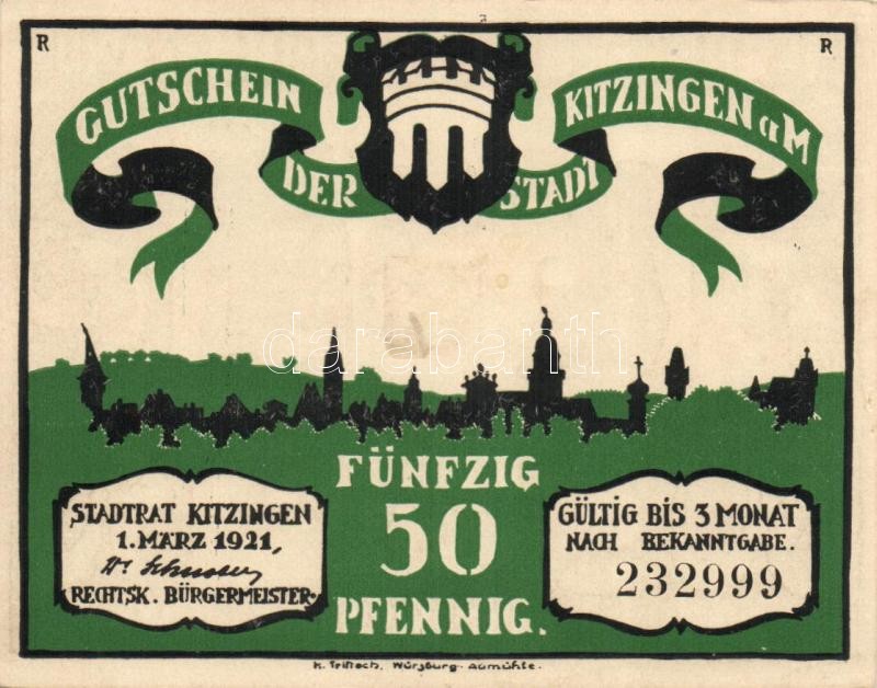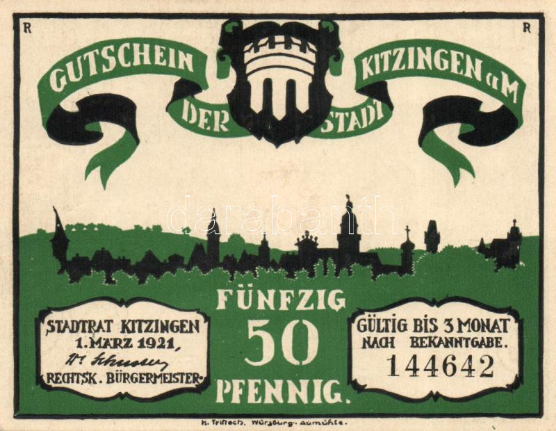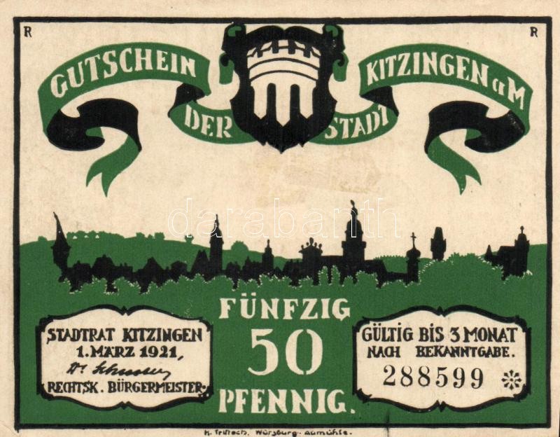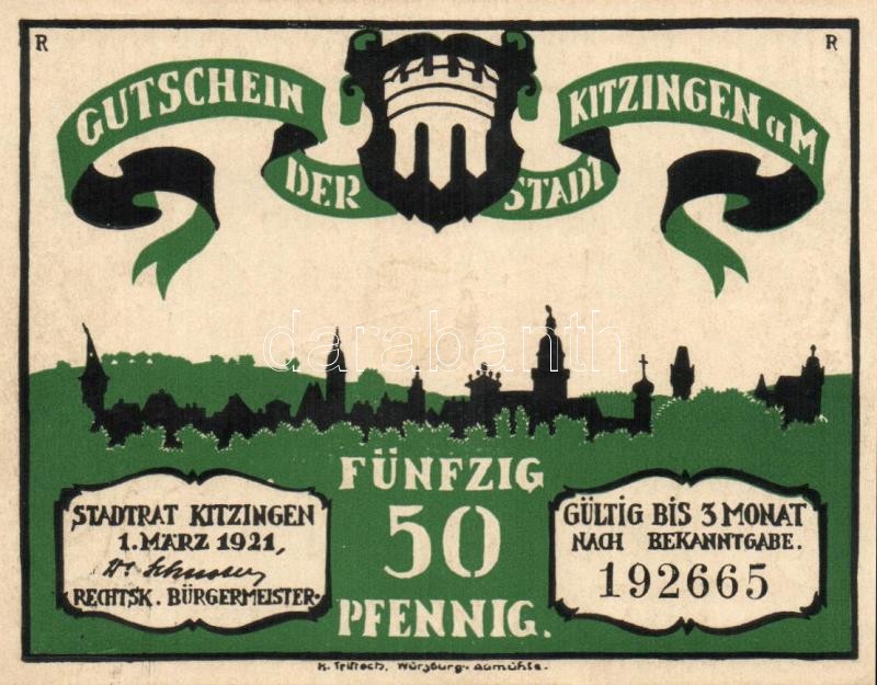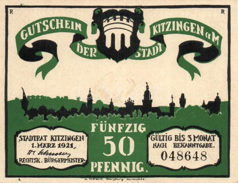 Német Birodalom / Weimari Köztársaság / Kitzingen 1921. 50Pf (6x) telj... https://www.darabanth.com/hu/116-Gyorsarveres/116.0/Numizmatika/Nemet-BirodalomCsaszarsagWeimari-KoztarsasagNemet-Allamok-bankjegyei-papir-es-fem-szuksegpenzei~330/Nemet-Birodalom-Weimari-Koztarsasag-Kitzingen-1921-50Pf-6x-teljes-sor-TI~II306786