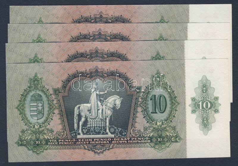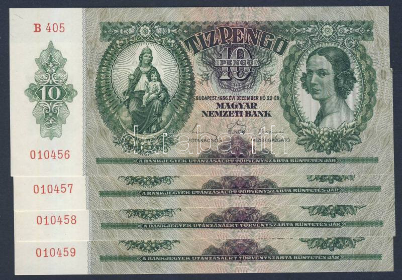 1936. 10P (4x) egymás utáni sorszámokkal T:I https://www.darabanth.com/hu/116-Gyorsarveres/116.0/Numizmatika/Osztrakmagyar-bankjegyek-magyar-es-magyar-vonatkozasu-bankjegyek~332/1936-10P-4x-egymas-utani-sorszamokkal-TI~II303392